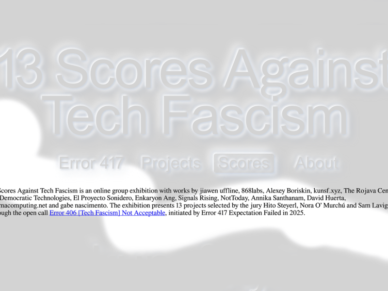 Error 417 Expectation Failed is looking for projects that reject the longing for a mythic “old internet” and confront the politics of net nostalgia head-on. Application deadline is 4 May, 2026.